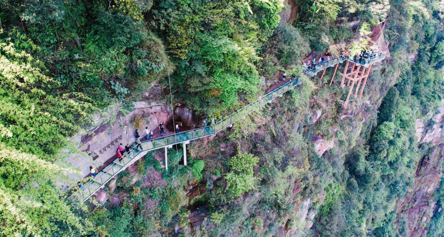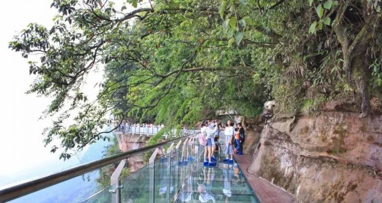 位于玉屏山风景区内,是四川境内离成都最近最长的一个玻璃栈道景区,全长150米左右、宽2米、海拔最高达1382米,拥有悬崖透明玻璃、3D色彩绚丽玻璃、5D视听逼真玻璃,景区内还有树桥、索桥等项目等你来发现。